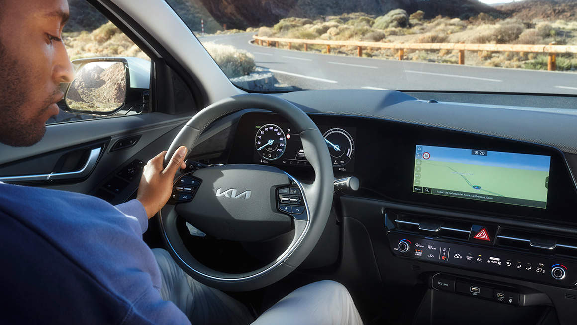 Im minimalistischen Cockpit des Kia Niro hast du mehr Kontrolle als je zuvor - mit Innovationen wie dem integrierten Doppeldisplay für alle deine Fahr-, Informations-, Konnektivitäts- und Unterhaltungsbedürfnisse. Mit dem Multimode-Control-Touch-Display kannst eine Vielzahl von Funktionen auf Knopfdruck steuern und mit einer einfachen Berührung nahtlos zwischen Klimaeinstellungen, Infotainment- und Navigationssteuerungen wechseln. Das sind Komfort und Fahrspaß auf höchstem Niveau.