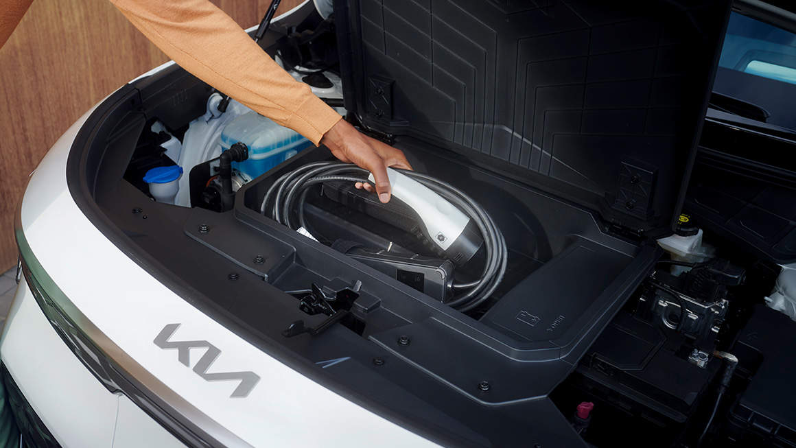 Dank seiner längeren und breiteren Proportionen sowie seines Radstandes bietet der Kia Niro eine ganz neue Dimension von Raum und Stauraum. Mit besonderen Lösungen wie einem Kofferraum unter der Motorhaube - kurz Frunk genannt - mit 20 Litern Stauraum: Das ist perfekt für alle möglichen Gegenstände, einschließlich des Ladekabels. Wenn du noch größere Utensilien unterbringen möchtest, lassen sich die Rücksitze umklappen, so dass dir je nach Niro-Modell bis zu 1.445 Liter Stauraum zur Verfügung stehen.